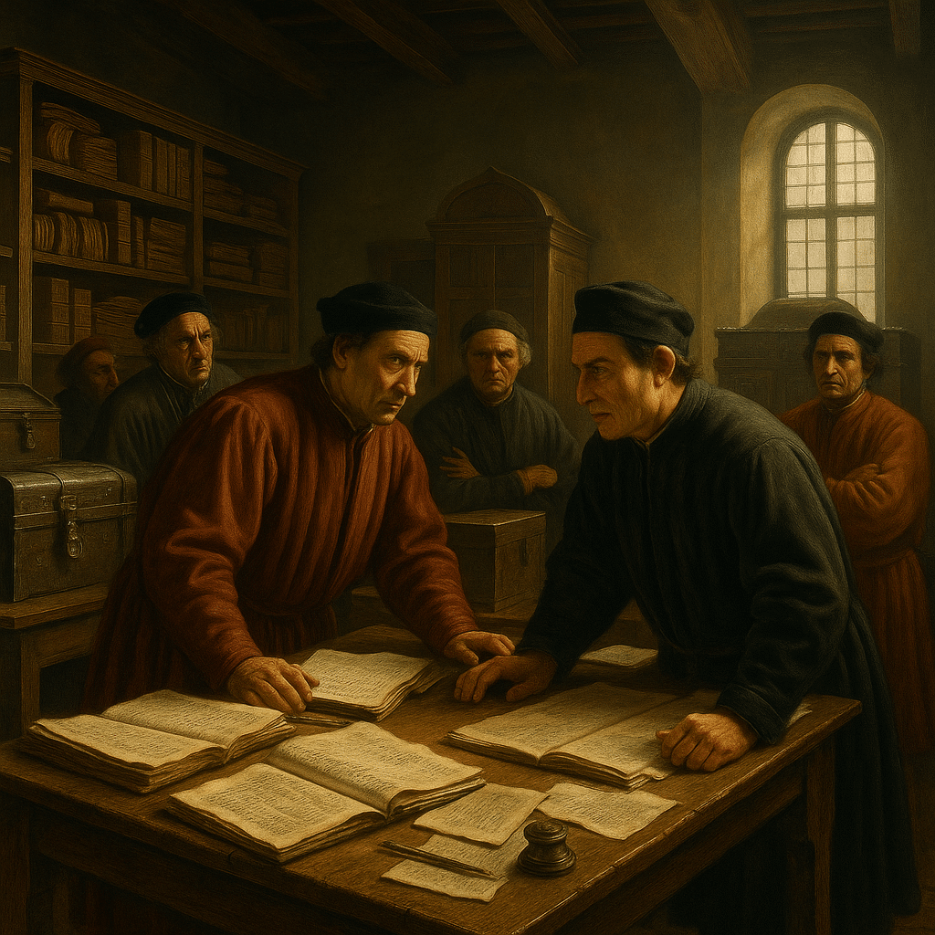 La banque des Médicis naît en 1397 sous l’impulsion de Giovanni di Bicci de Medici. Elle prospère rapidement grâce à la rigueur de sa gestion et à la proximité de la famille avec le pape. Les Médicis obtiennent la gestion des finances pontificales, un privilège inestimable. Dès lors, leurs coffres se remplissent : Florence devient la capitale mondiale de la finance.